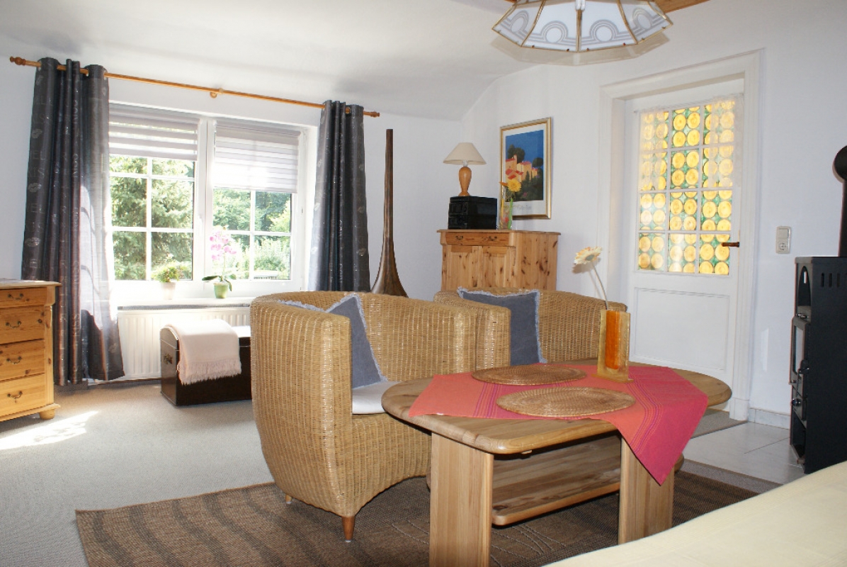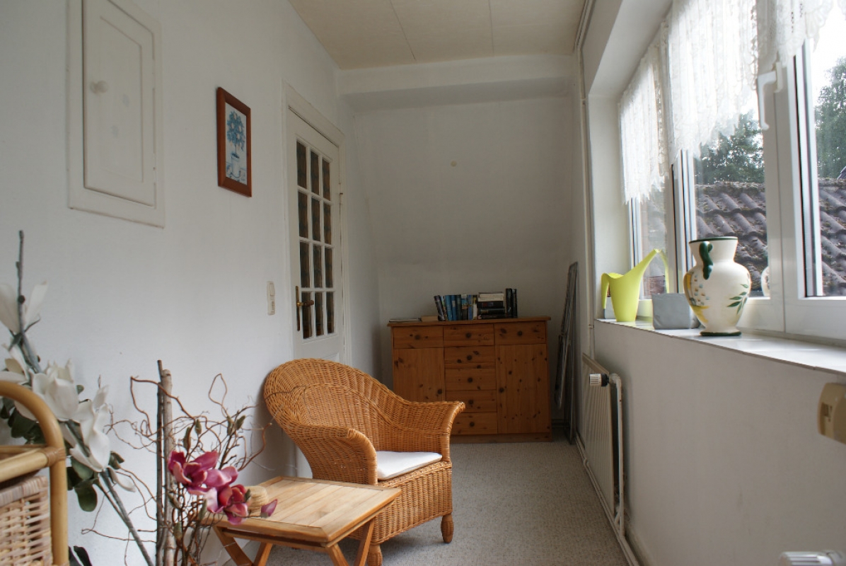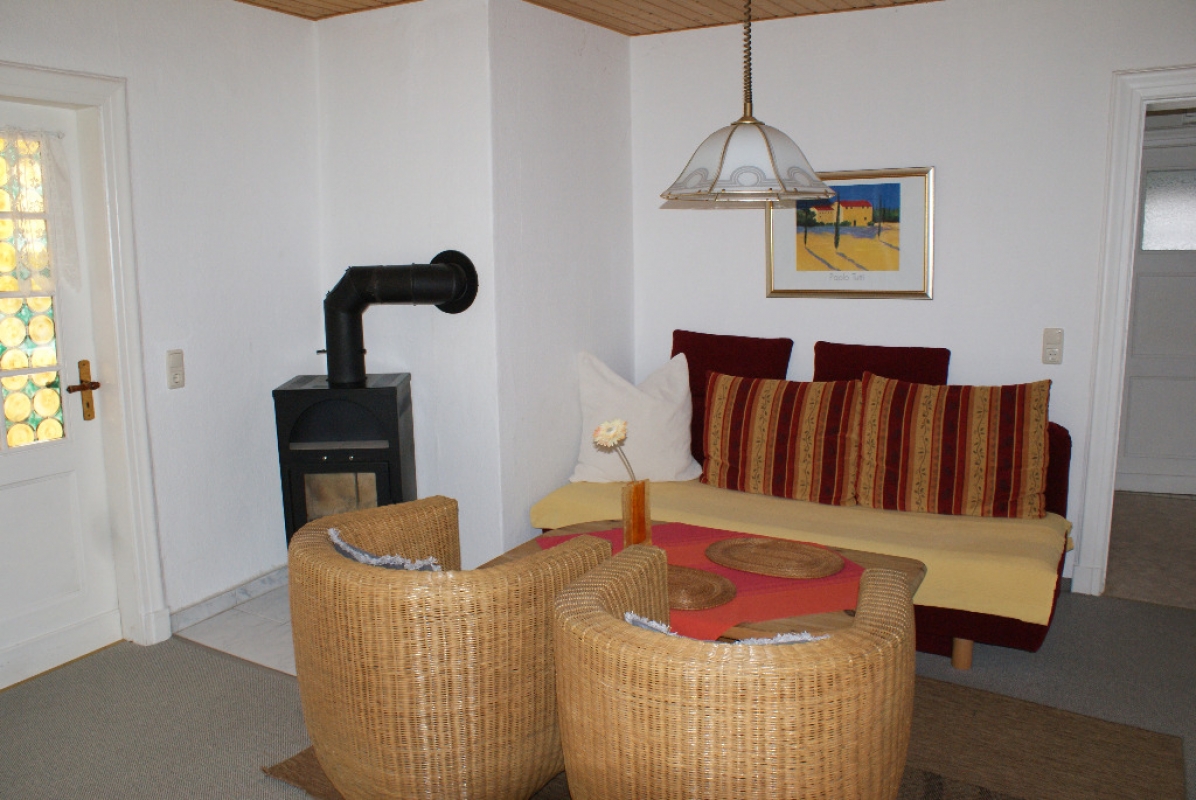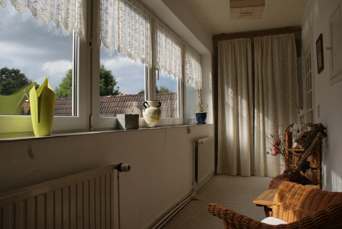 Unsere Ferienwohnung befindet sich im 1. Obergeschoss eines Mehrfamilienhauses. Die Ferienwohnung ist ca. 60 qm groß und verfügt über ein Wohnzimmer, Schlafzimmer mit Doppelbett, Küche, kleine Duschecke, WC und eine Veranda.