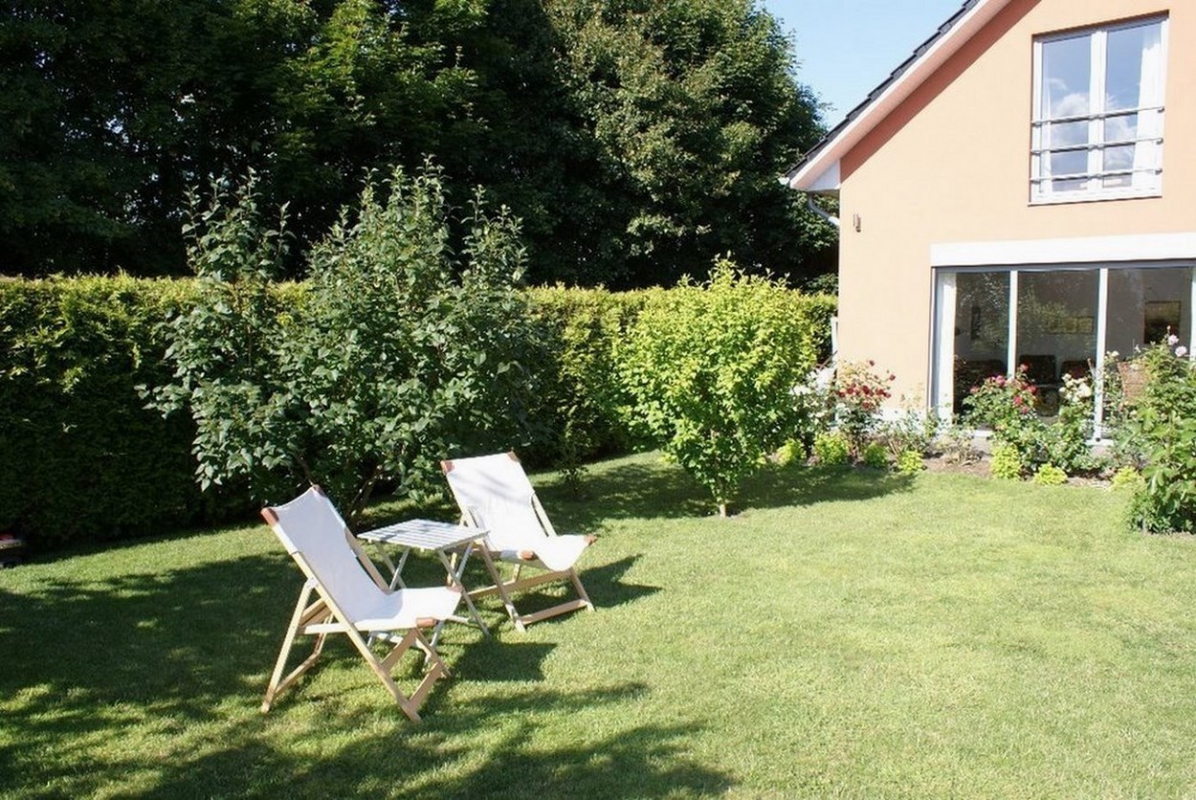 - Garten mit Liegewiese, Sitzmöbel und Grill