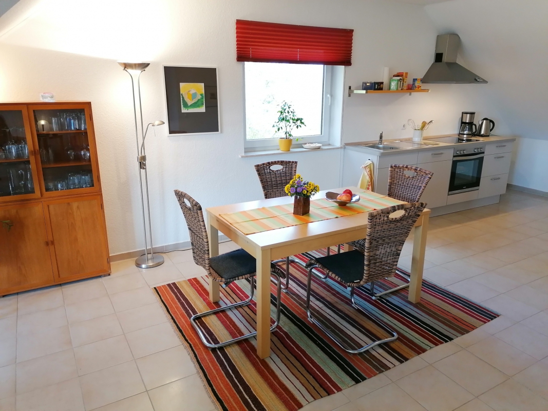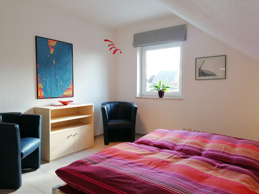 Unsere helle, lichtdurchflutete Ferienwohnung befindet sich im Obergeschoss eines Einfamilienhauses und hat einen separaten Eingang.