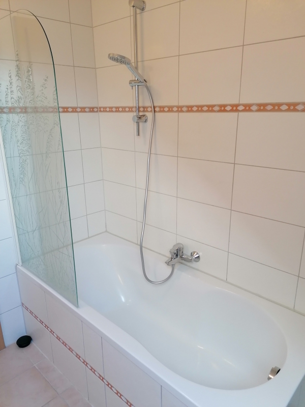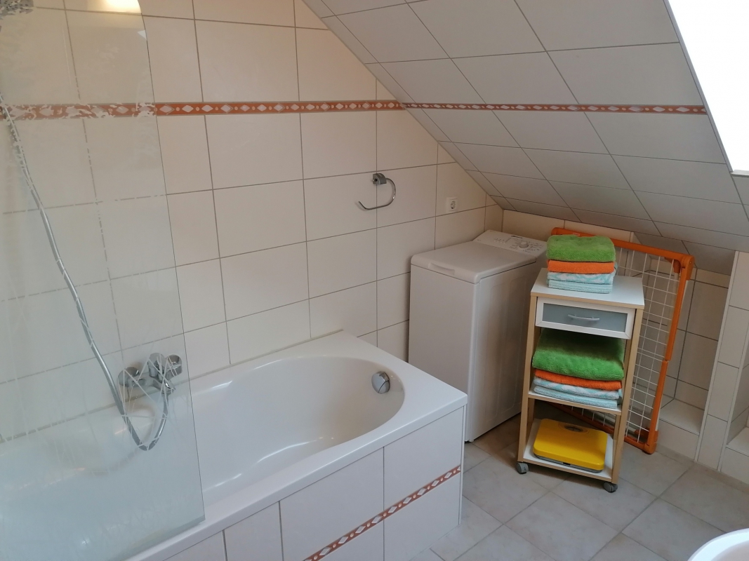 - Badezimmer: Badewanne mit Duschfunktion, WC, Spiegel, Wäscheständer, Fön
