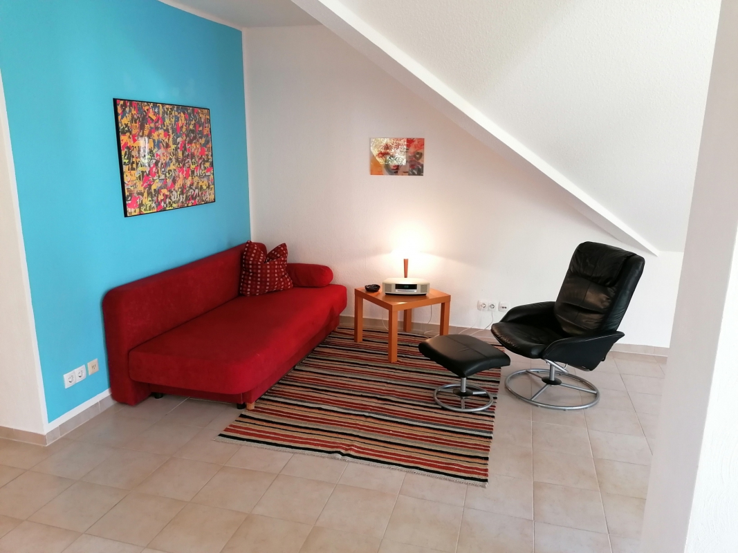 - Wohnzimmer: Sofa mit Sessel, ein großer Flat-TV und eine moderne Hifi-Anlage mit besten Klang, ein Schreibtisch, großer Esstisch für 5 Personen, 1 Schlafsofa (1,60 x 2,00m)